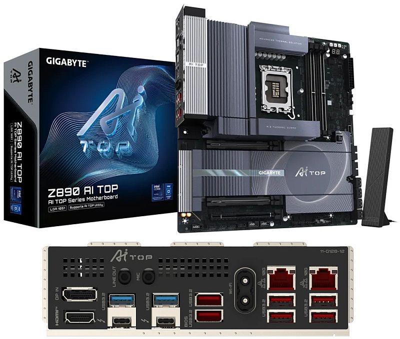 • Gigabyte Z890 AI TOP WIFI7 PCI-E 5.0 USB3.2 SATA600 M2 DDR5 gigabit netwerkkaart moederbord