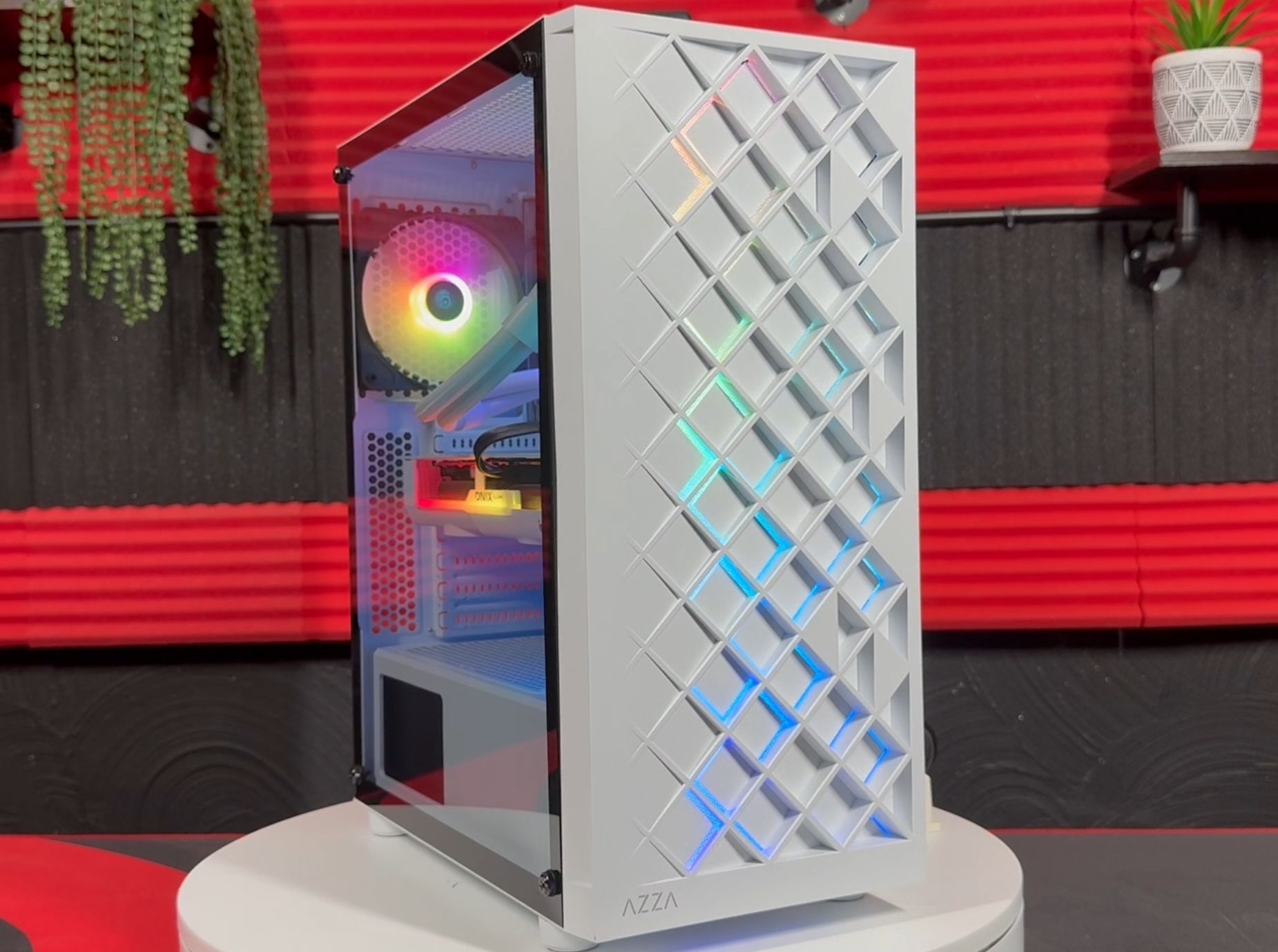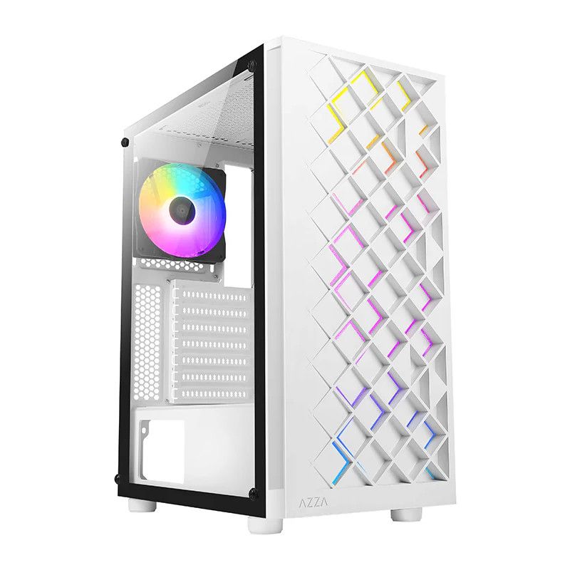 • witte AZZA Spectra tempered glas RGB behuizing ARGB fans (front: geluid & 3x USB)